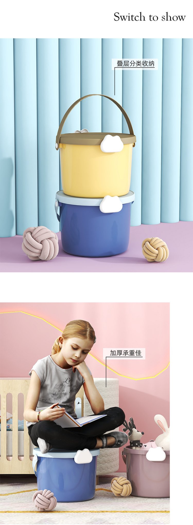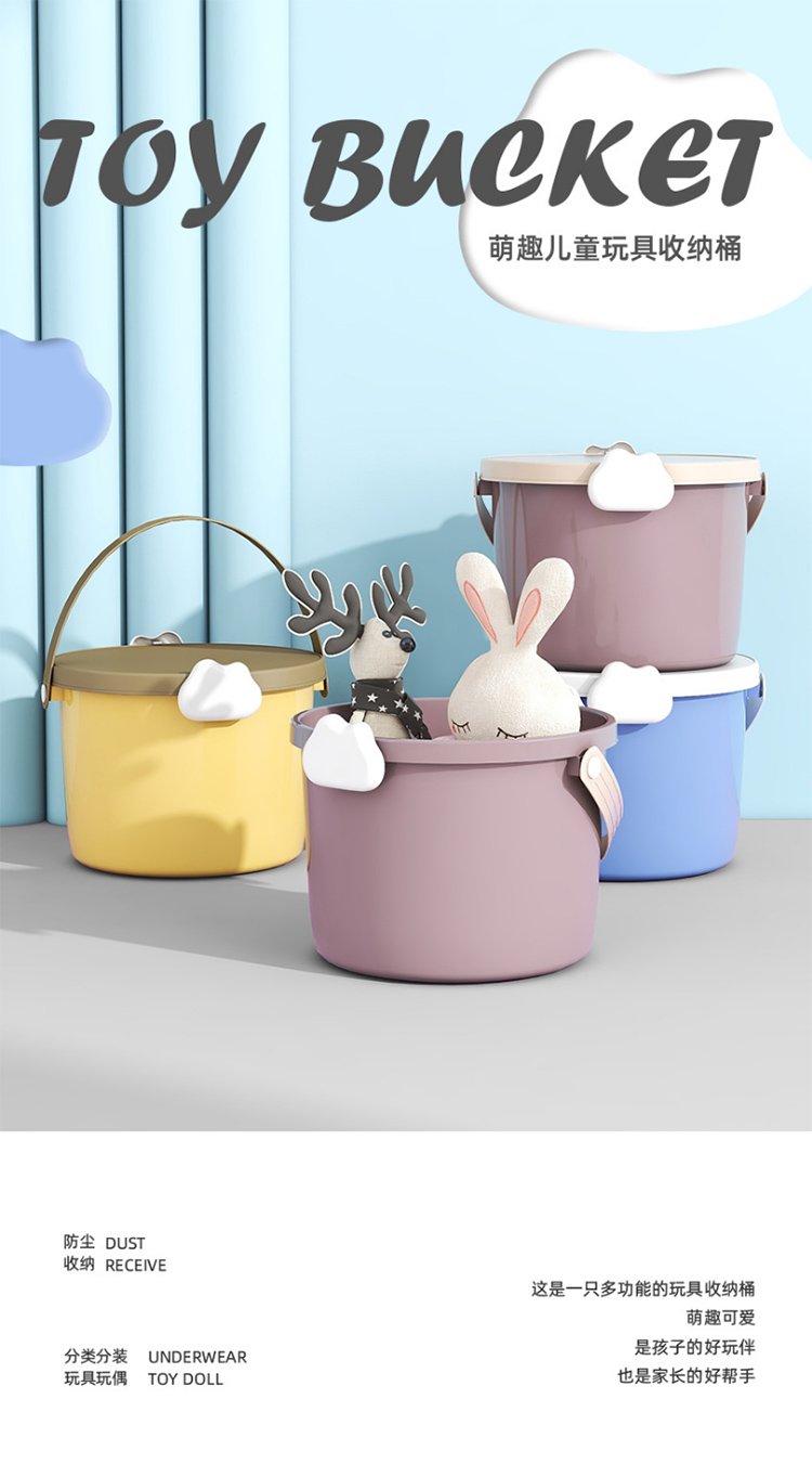 儿童玩具手提桶积木包装桶塑料桶12L食品PP圆型收纳桶礼品