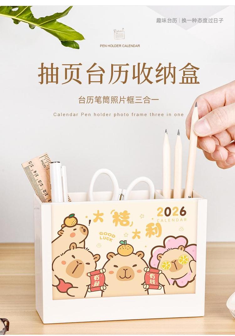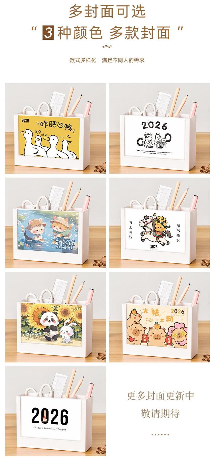 2026年台历塑料办公收纳笔筒桌面日历广告印刷企业礼品可印LOGO