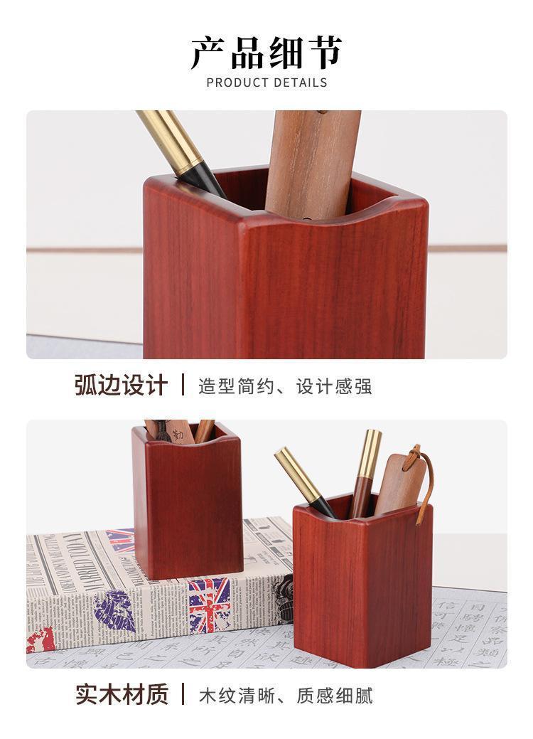 办公室桌面笔筒红木复古文创产品木质收纳盒学生文具笔桶定制logo